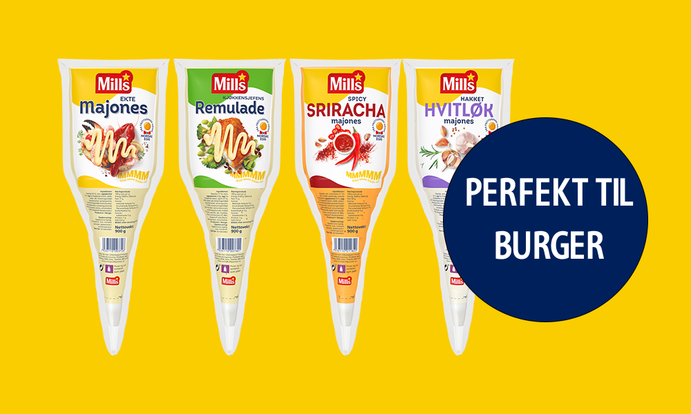 Visste du at alle majoneser fra Mills produseres i Fredrikstad? Og at de lages med norske egg? Finn det du trenger til menyen her.